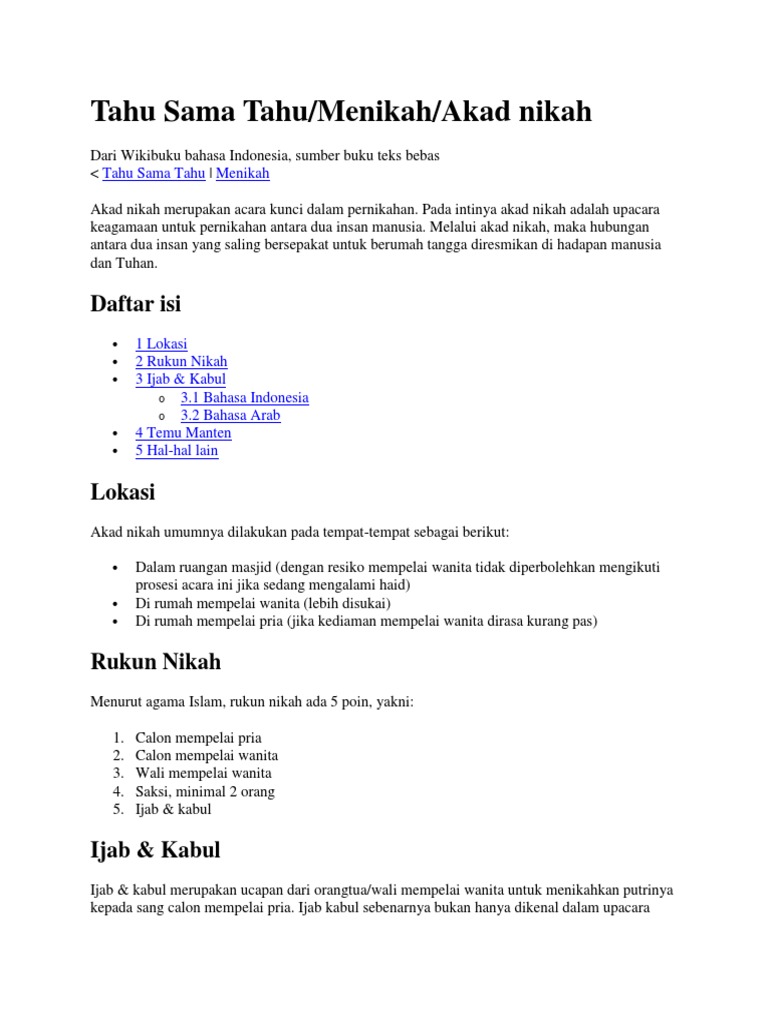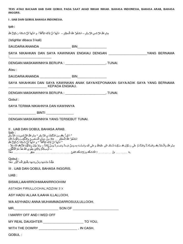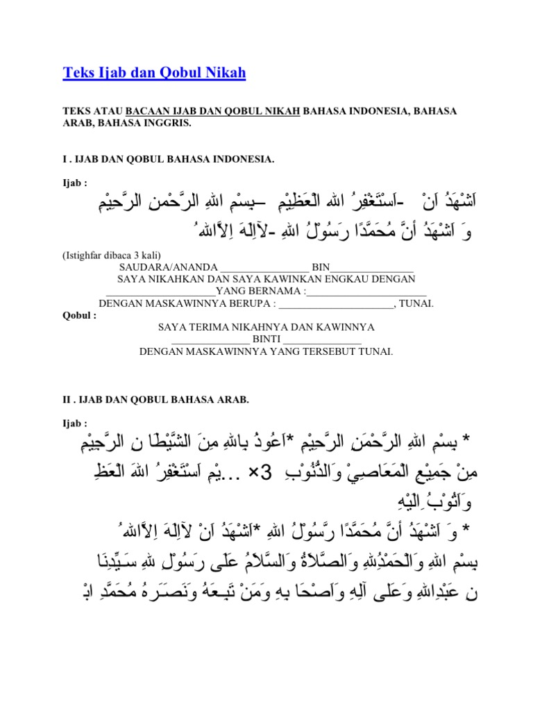 Lafadz Ijab Qobul Versi Bahasa Indonesia Dan Versi Bahasa Arab Home