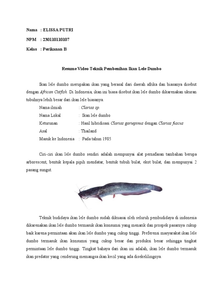 Klasifikasi Morfologi Dan Biologis Ikan Lele Dumbo