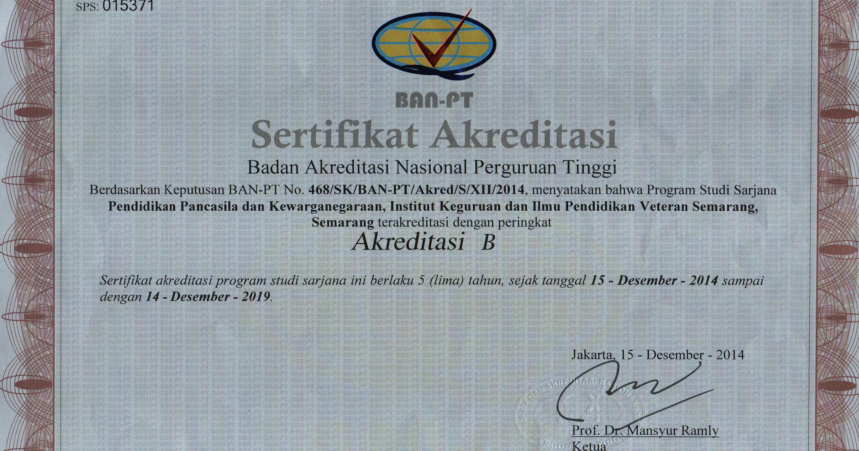 Download Setifikat Akreditasi Program Studi Ikip Veteran Semarang Gratisiana Net