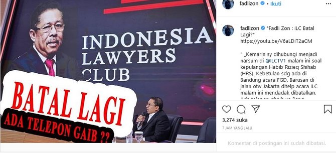 Ilc Bahas Kepulangan Rizieq Batal Fadli Zon Curiga Ada Telepon Gaib Ke Karni Ilyas Merdeka Com