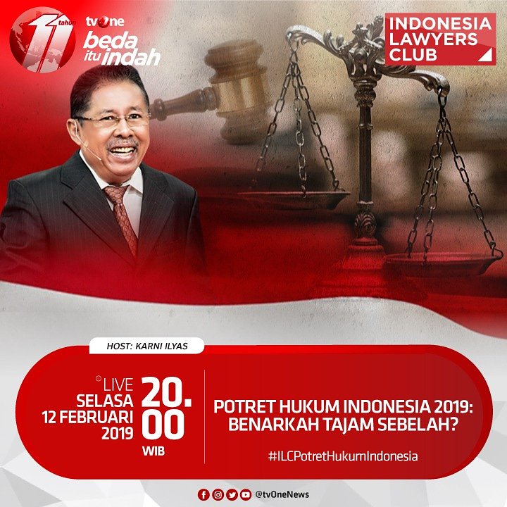 Indonesia Lawyers Club On Twitter Malam Ini Ilc Tayang Live Pkl 20 30 Wib Tvone Ilcpotrethukumindonesia Karniilyas