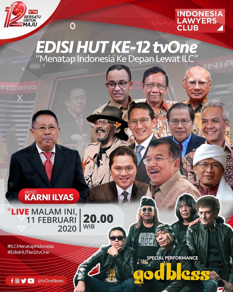 Tvonenews On Twitter Jangan Lewatkan Indonesia Lawyers Club Edisi Hut Ke 12 Tahun Tvone Menatap Indonesia Ke Depan Lewat Ilc Malam Ini Jam 20 00 Wib Live Hanya Di Tvone Streaming Tvone Connect