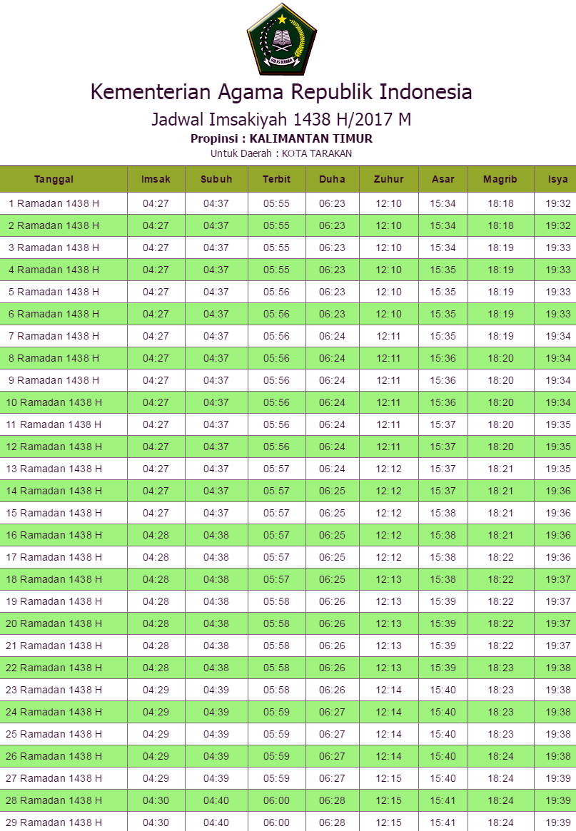 Jadwal Imsak Tarakan 2017 Hari Ini