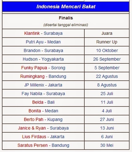 Inilah Daftar Lengkap Juara Indonesia Mencari Bakat Imb Berita Tips Status Wa