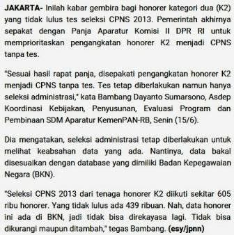 Seputar Pengangkatan Honorer K2 Menjadi Cpns Pns Dan Informasi Pendidikan Sd Smp Dan Sma K