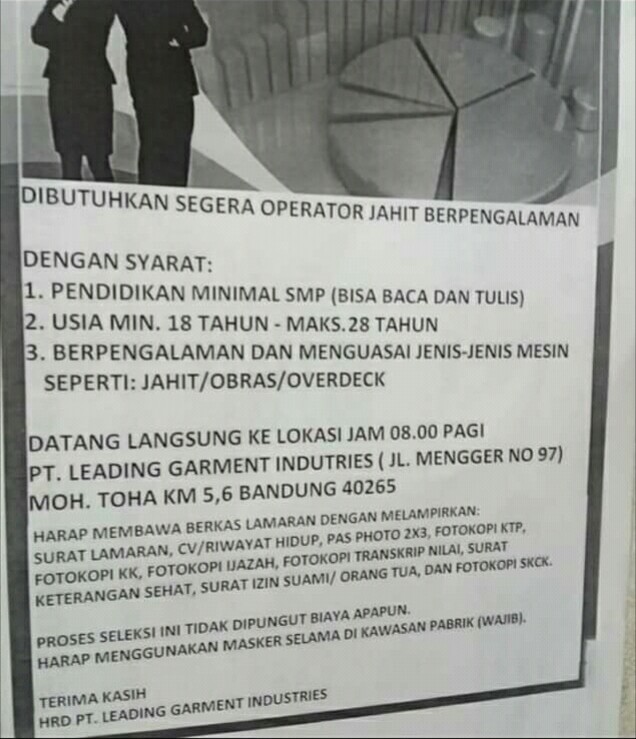 Lowongan Kerja Operator Jahit Pt Leading Garment Industries Info Loker Bdg Informasi Lowongan Kerja Bandung