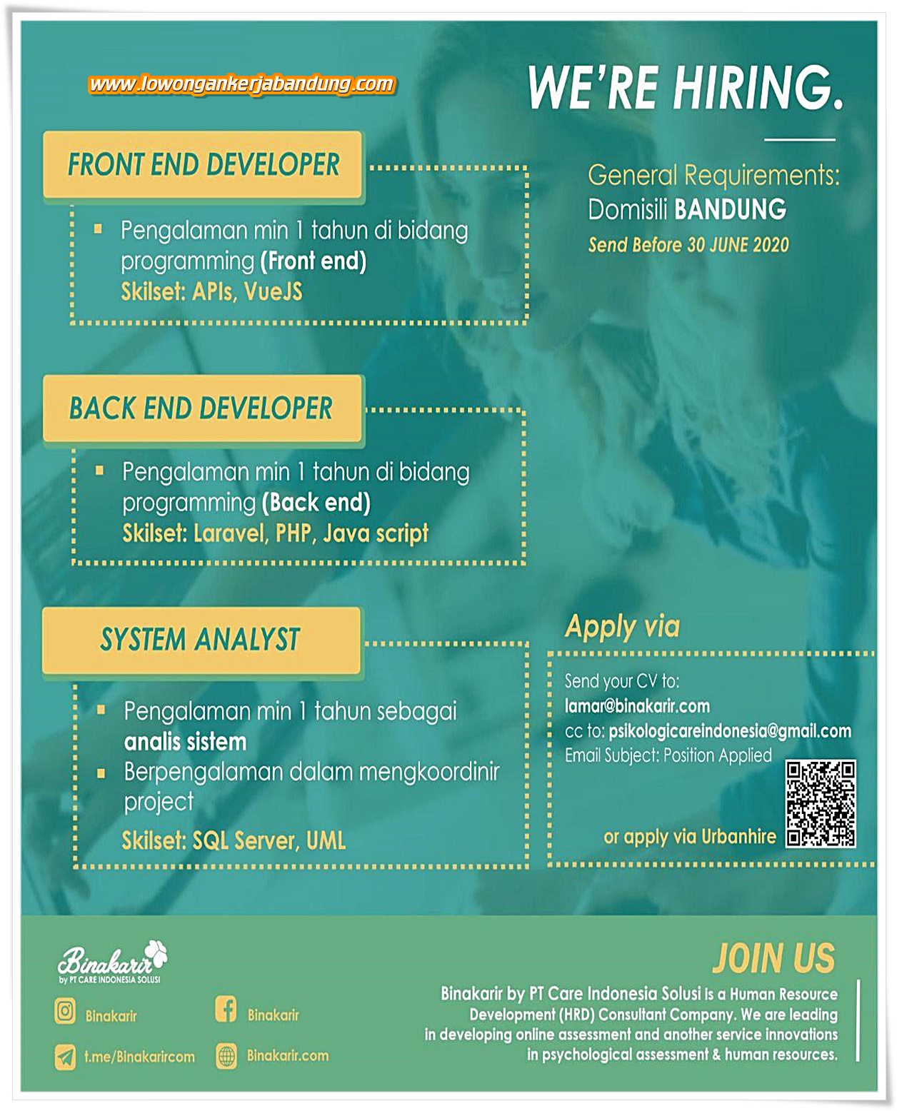 Loker Bandung We Are Hiring Sd 31 Januari 2021 Infolowongankerja Infoloker Infolowon Aikerja Com