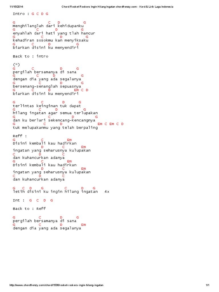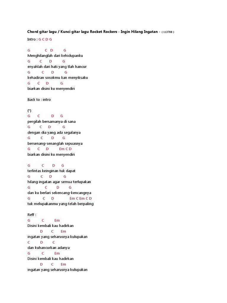 Chord Ingin Hilang Ingatan Rocket Rockers Kunci Gitar Dasar Dari G Lirik Lagu Menghilanglah Dari Tribunmanado Co Id