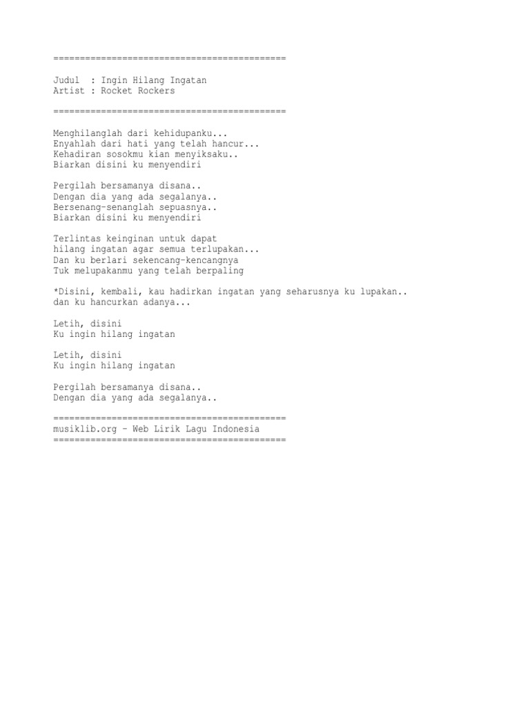 Lirik Lagu Ingin Hilang Ingatan Rocket Rockers Merdeka Com