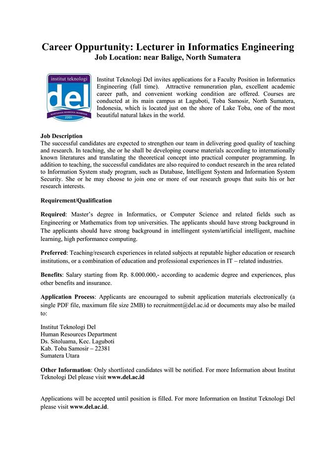 Lowongan Dosen Teknik Informatika Institut Teknologi Del Sumatera Utara Lowongan Dosen