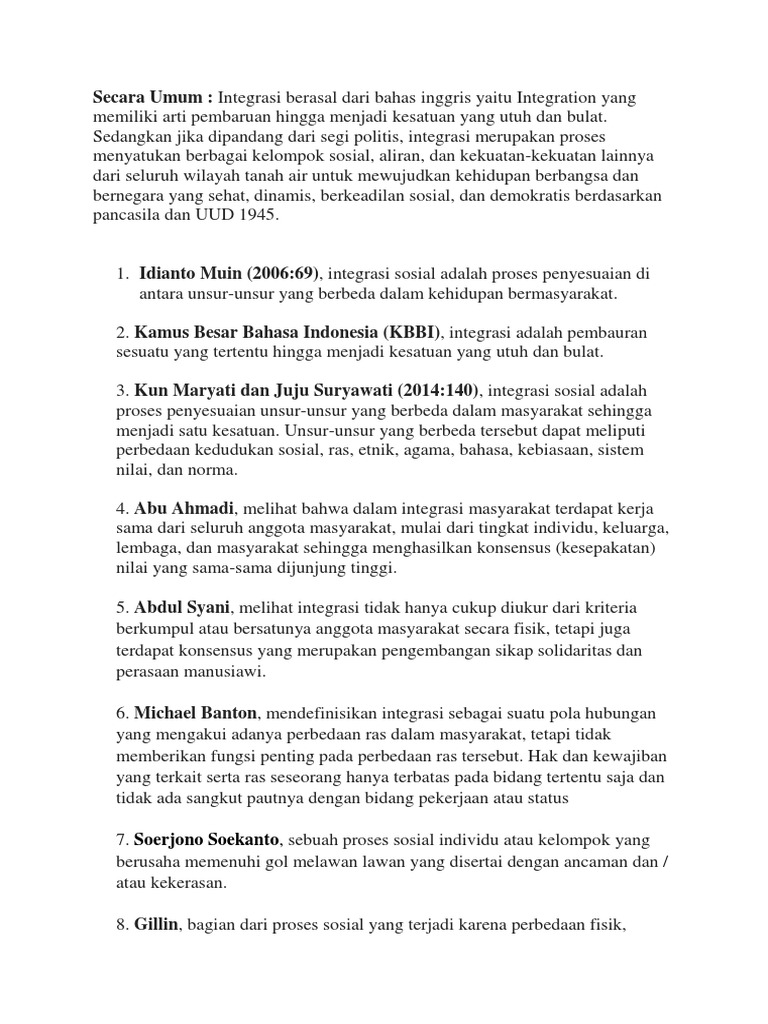 Integrasi Sosial Pengertian Syarat Bentuk Faktor Lengkap