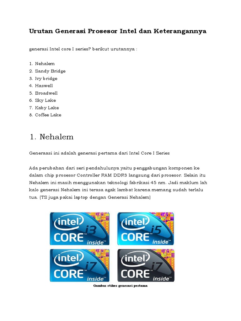 Urutan Generasi Processor Intel Beserta Keterangannya Andronezia
