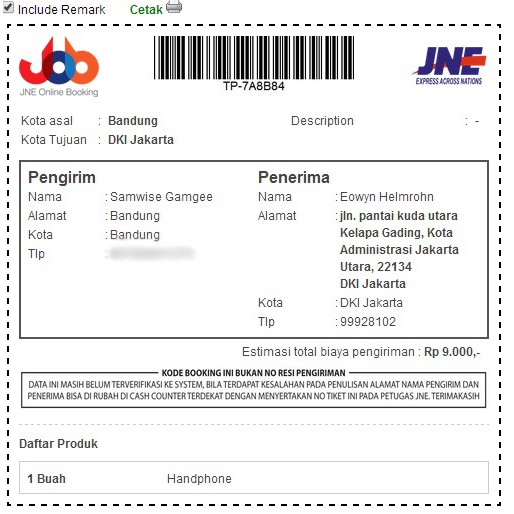 Detail Cetak Resi Job Jne Online Booking Kota Balikpapan Label Pengiriman Tanggal