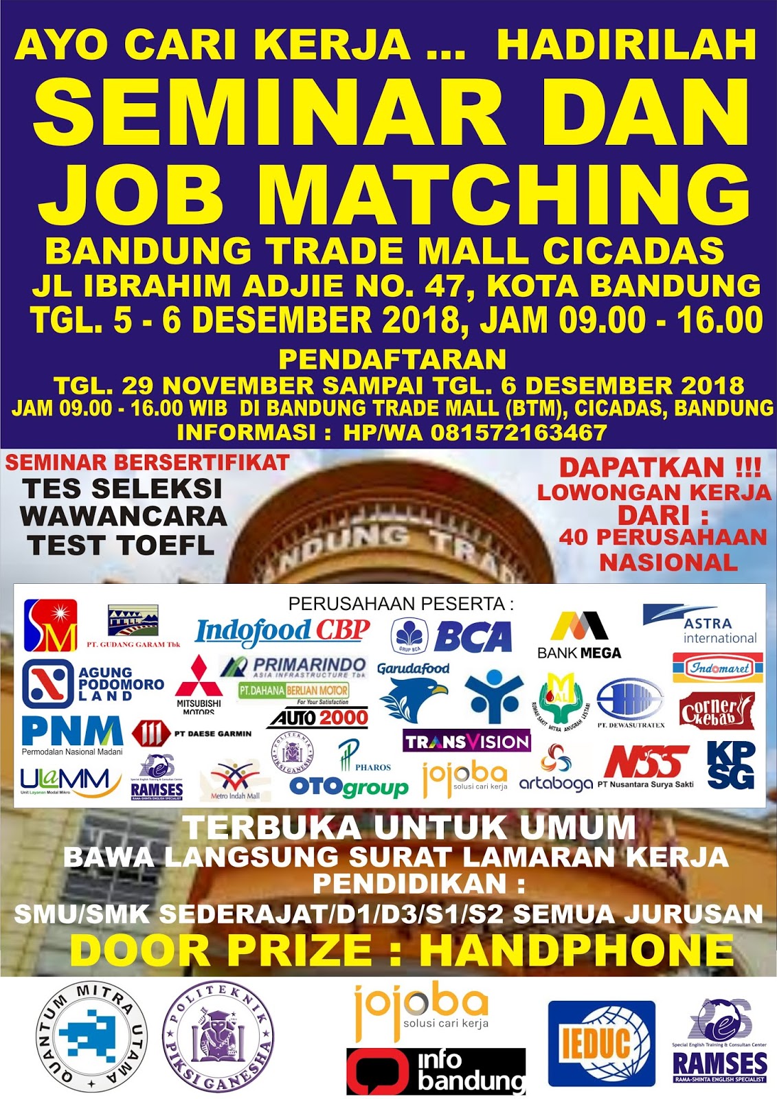 Seminar Dan Job Matching Bandung Trade Mall Cicadas Btc 5 6 Desember 2018 Info Loker Bandung November 2021