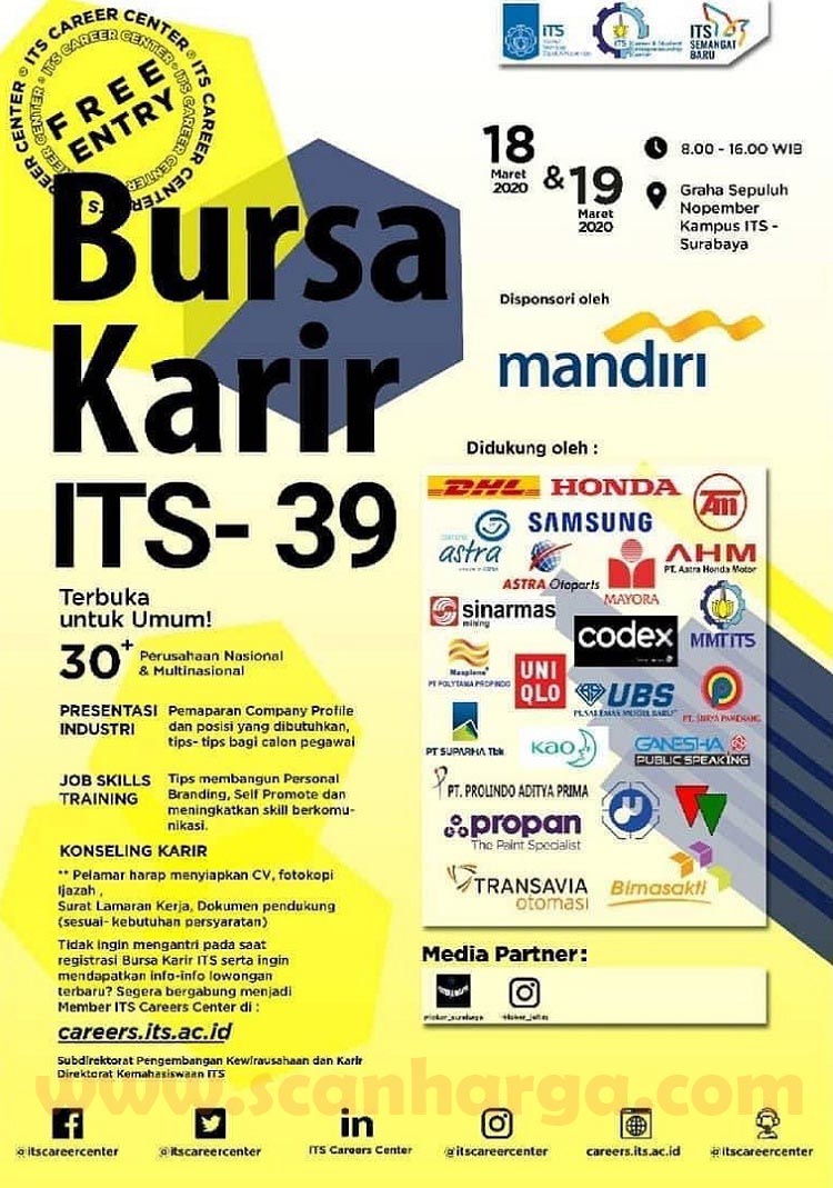 Job Fair Bursa Karir Lowongan Kerja Its Ke 39 Di Surabaya 18 19 Maret 2020 Scanharga