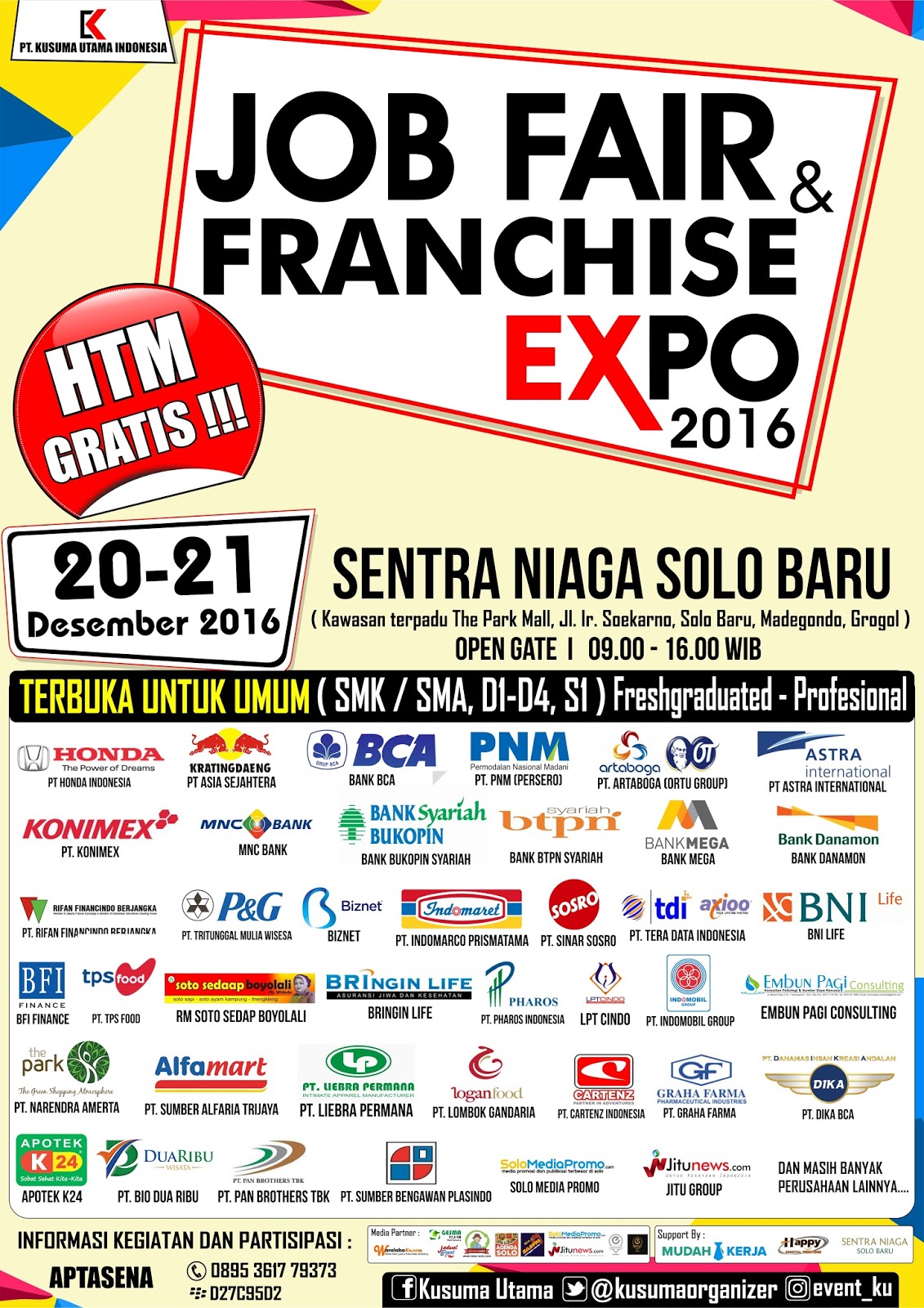 Seminar Job Fair Dan Franchise Expo 2016 Di Sentra Niaga Solo Baru Tanggal 20 21 Desember 2016 Portal Info Lowongan Kerja Terbaru Di Solo Raya Surakarta 2021