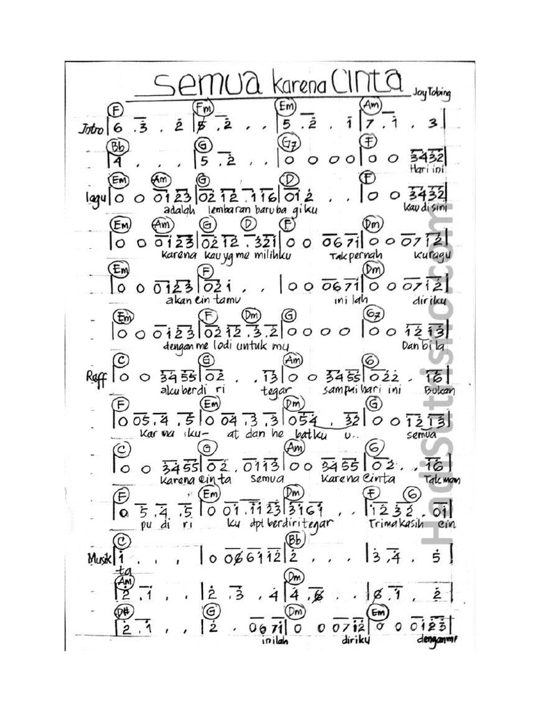 Not Angka Lagu Semua Karena Cinta Joy Tobing Not Angka Lagu