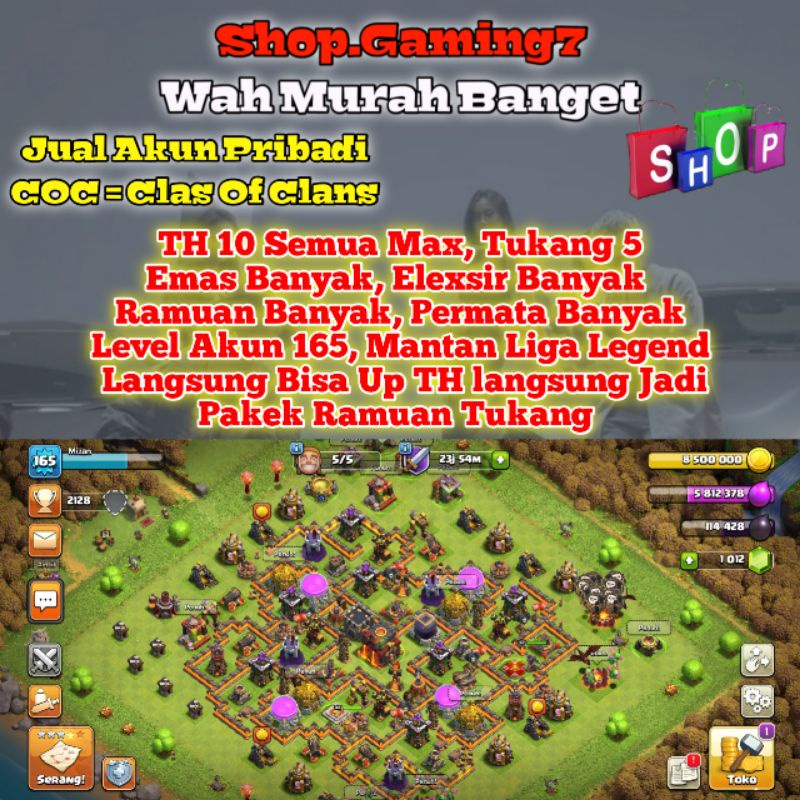 Jual Jual Akun Coc Th 10 Max Di Lapak Geovanni Bukalapak
