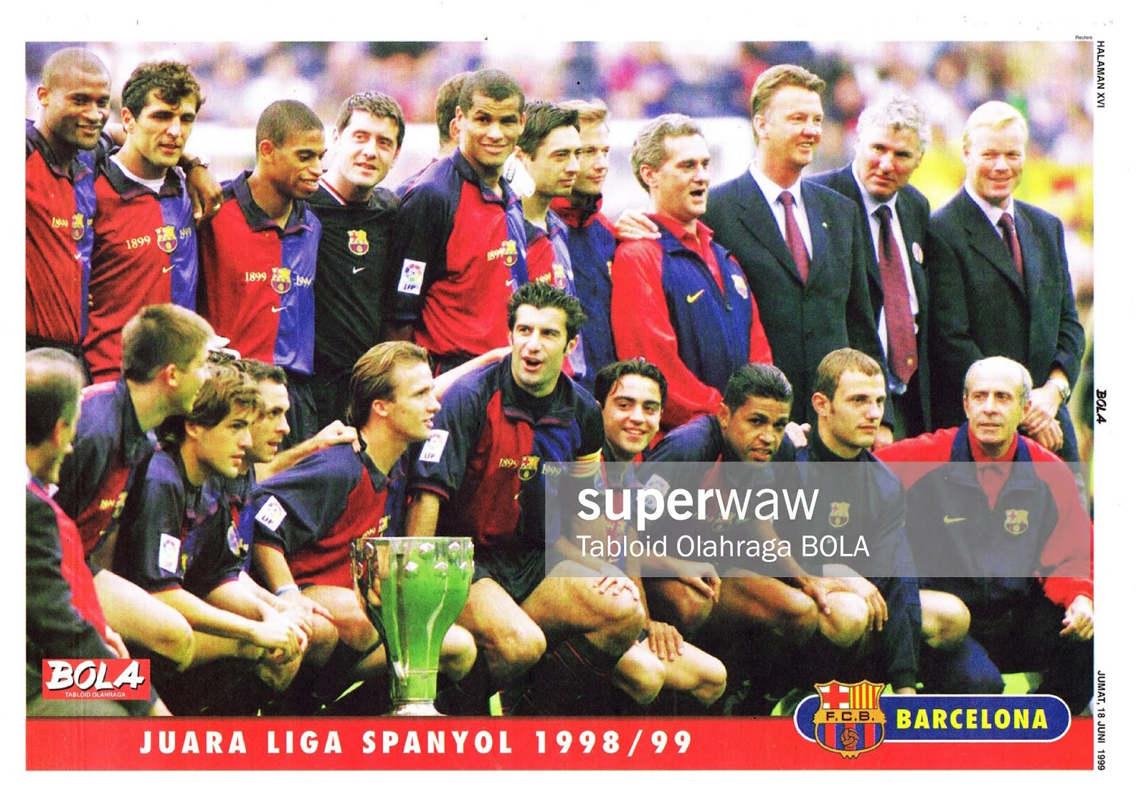 Poster Tim Barcelona Juara Liga Spanyol 1998 99