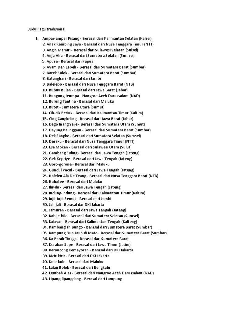 400 Lagu Lagu Daerah Indonesia Dan Asalnya Lengkap 34 Provinsi