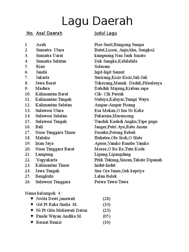 Daftar Lagu Daerah Dan Penciptanya Omndo Com