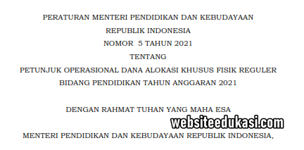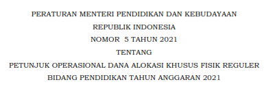 Juknis Dak Fisik Tahun 2021 Permendikbud No 5 Tahun 2021