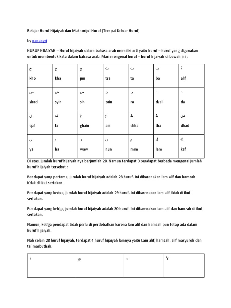Mengenal Huruf Hijaiyah Dan Makharijul Huruf Posciety