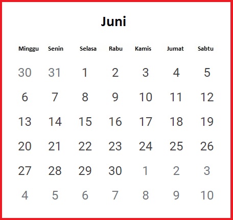 Kalender Bulan Juni 2020 Lengkap Hari Libur Nasional