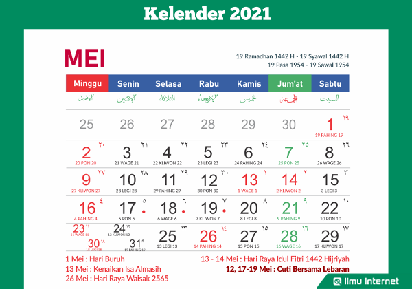 Kalender Mei 2021 Tanggalan Nasional Masehi Jawa Dan Hijriyah Prabu Blog