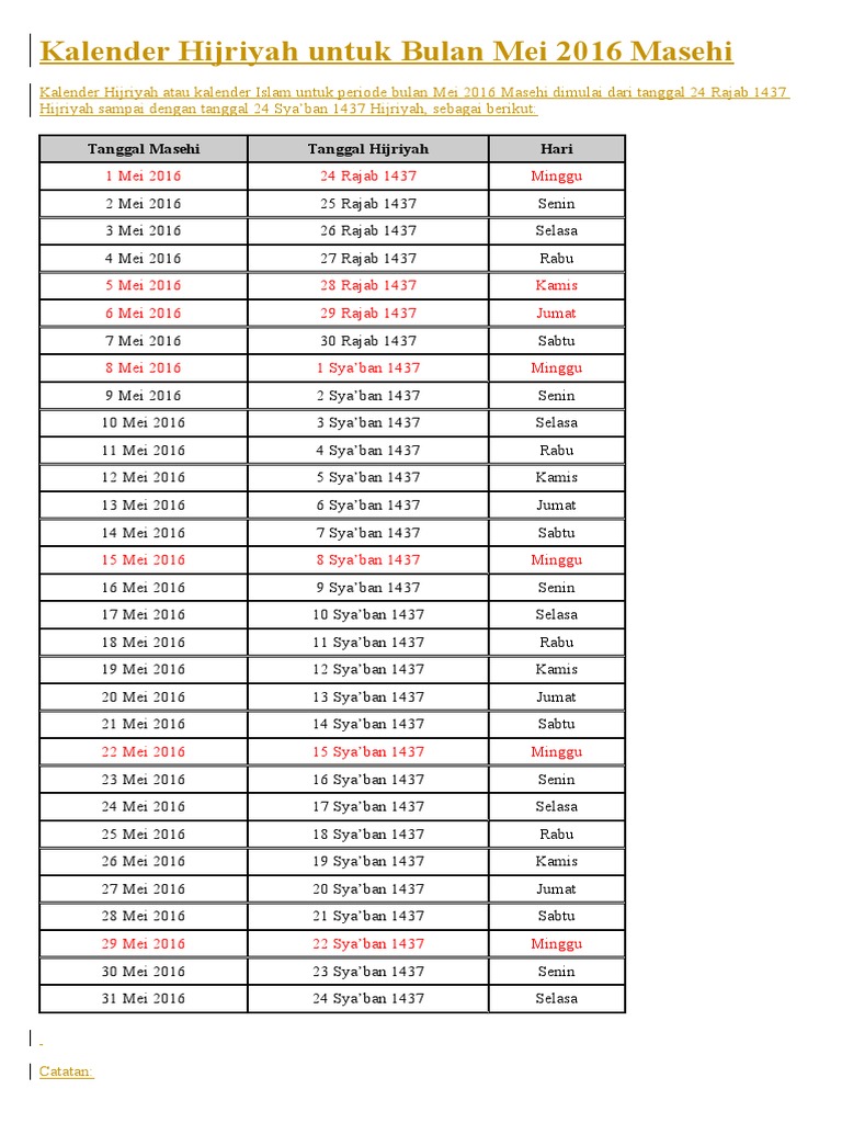 Kalender Hijriyah 1437 7 8 Rajab Syaban Ayuprint Co Id