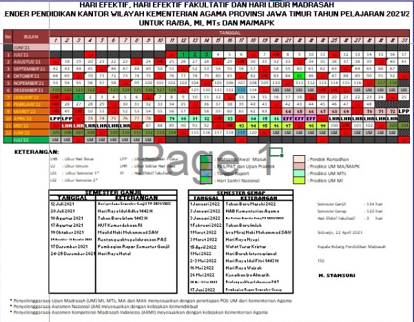 Kalender Pendidikan Madrasah Tahun Pelajaran 2021 2022 Versi Exel Admin Bawean