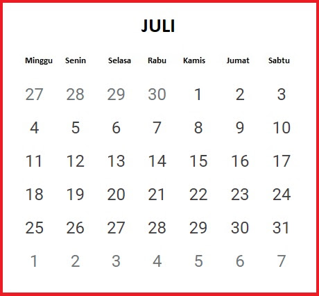 Kalender Bulan Juli 2021 Lengkap Hari Libur Nasional