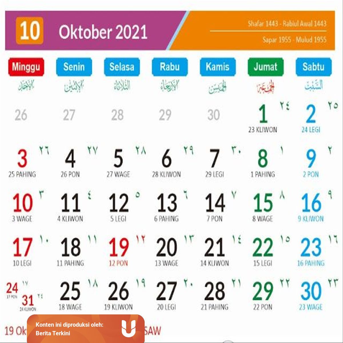Kalender Tanggalan Jawa Oktober 2021 Dan Hari Libur Resmi Dari Pemerintah Ayo Bandung