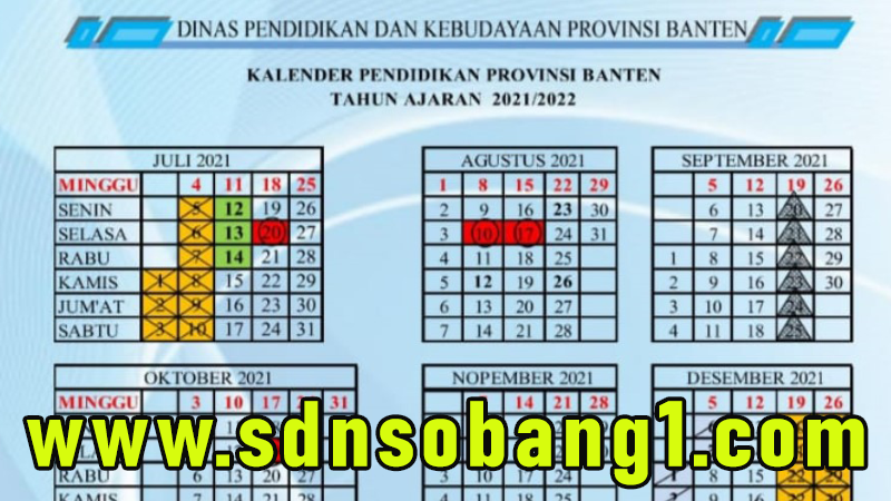 Kalender Pendidikan Provinsi Banten Tahun Pelajaran 2021 2022 Sdn Sobang 1