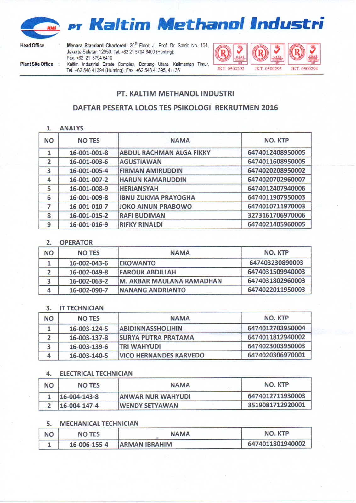 Pengumuman Pt Kaltim Methanol Industri