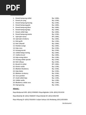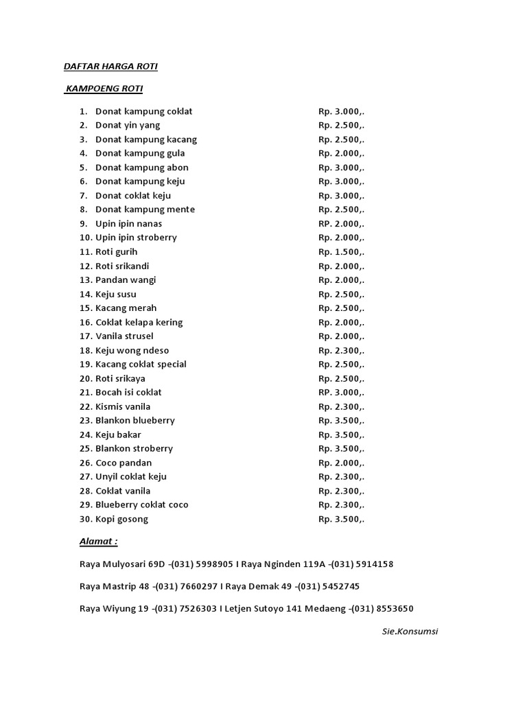 Varian Dan Harga Menu Kampoeng Roti Daftar Harga Tarif