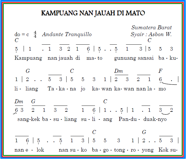 Buatkan Not Balok Lagu Kampuang Nan Jauh Di Mato Dengan Nada Dasar C Do Brainly Co Id