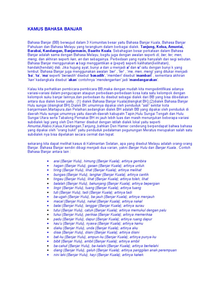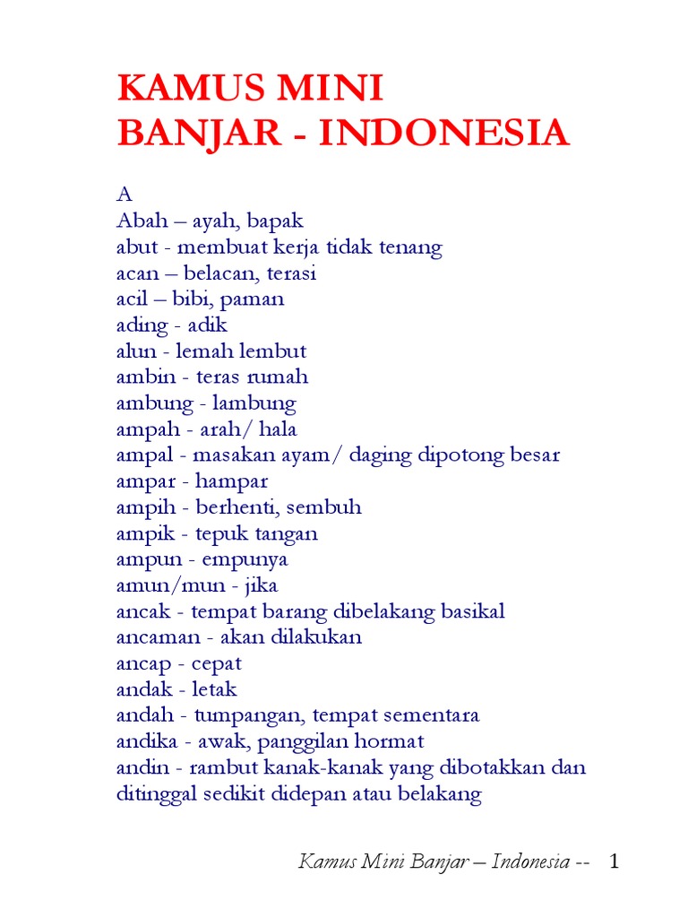Kosa Kata Bahasa Banjar Dan Kamus Bahasa Banjar Terlengkap Dari A Z