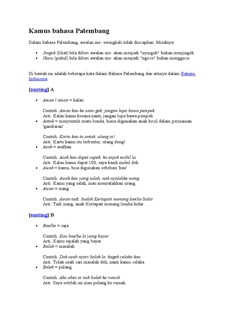 Mengenal Kamus Bahasa Palembang Lengkap Halaman 1