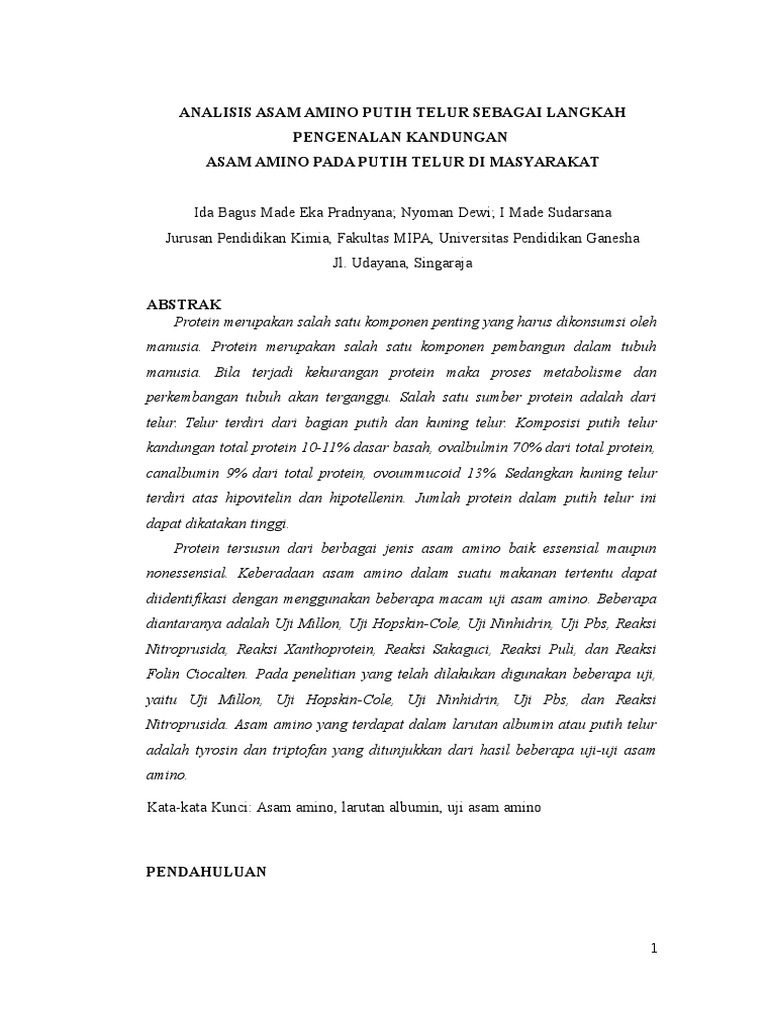 Pdf Perbandingan Kadar Protein Telur Pada Telur Ayam Dengan Metode Spektrofotometri Vis