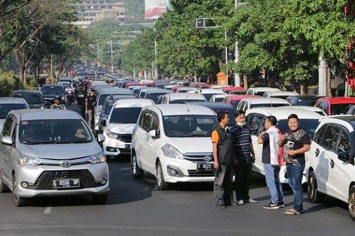 Ratusan Mobil Anggota Driver Online Datangi Kantor Gubernur Jawa Tengah Begini Kondisinya Gridoto Com