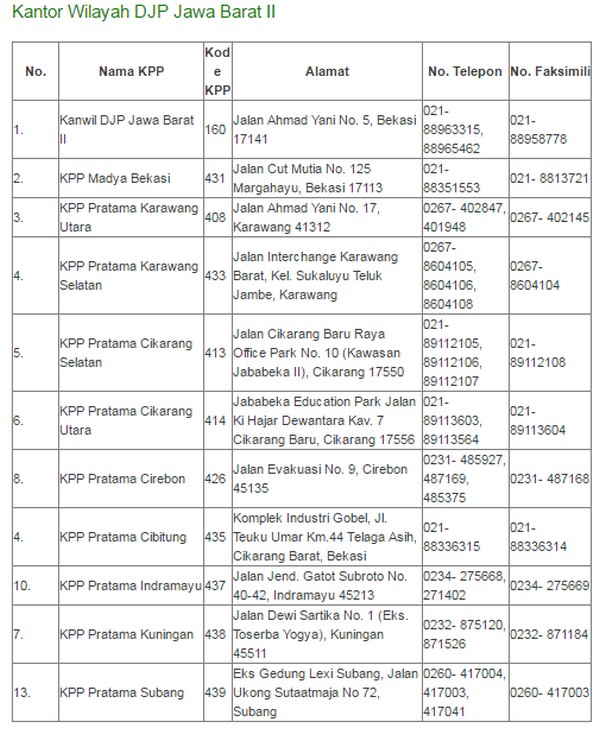 Daftar Alamat Lengkap Kantor Pajak Bekasi Tours By Rail