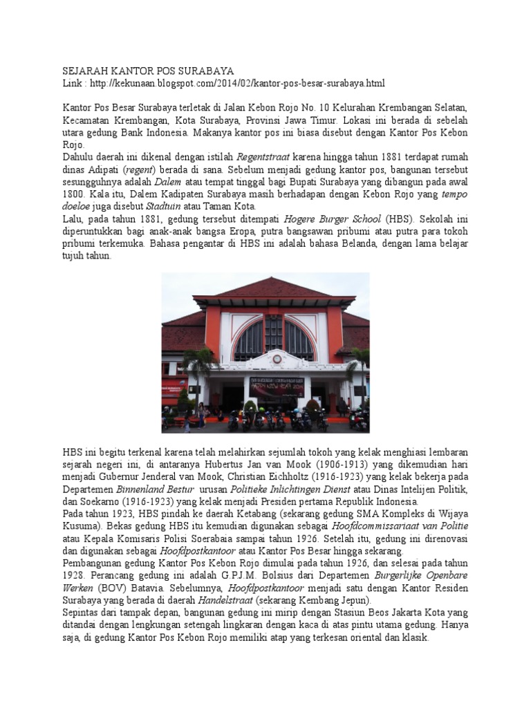 Sekolah Soekarno Di Surabaya Kini Jadi Kantor Pos Kebon Rojo Kumparan Com