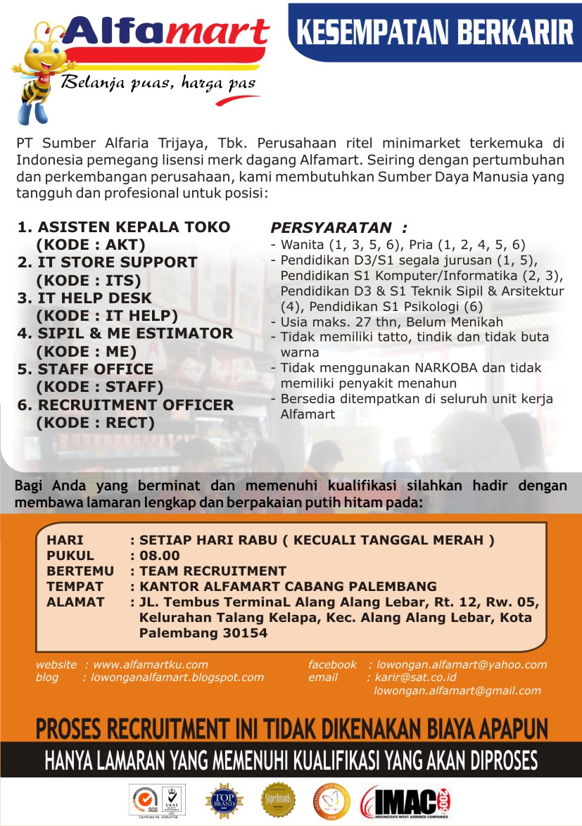 Lowongan Kerja Pt Sumber Alfaria Trijaya Tbk Alfamart Branch Serang Serangkab Info