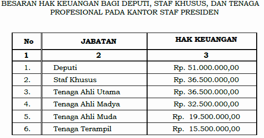 Hak Keuangan Kantor Staf Presiden Gaji Dan Tpp Pns