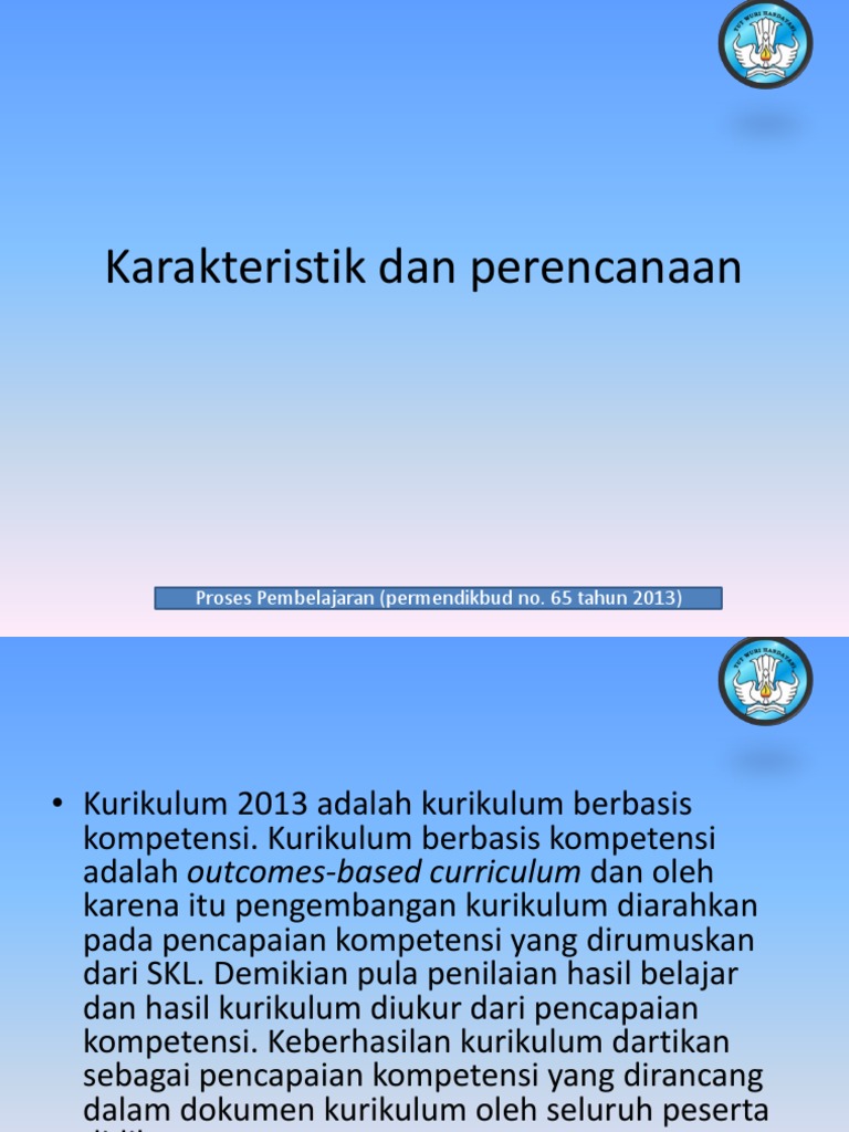 Belajar Dan Pembelajaran Karakteristik Kurikulum 2013