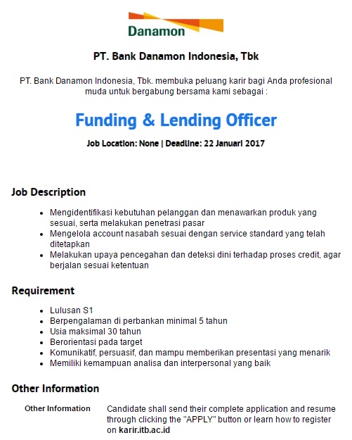 Lowongan Funding Lending Officer Pt Bank Danamon Indonesia Tbk Info Loker Pas