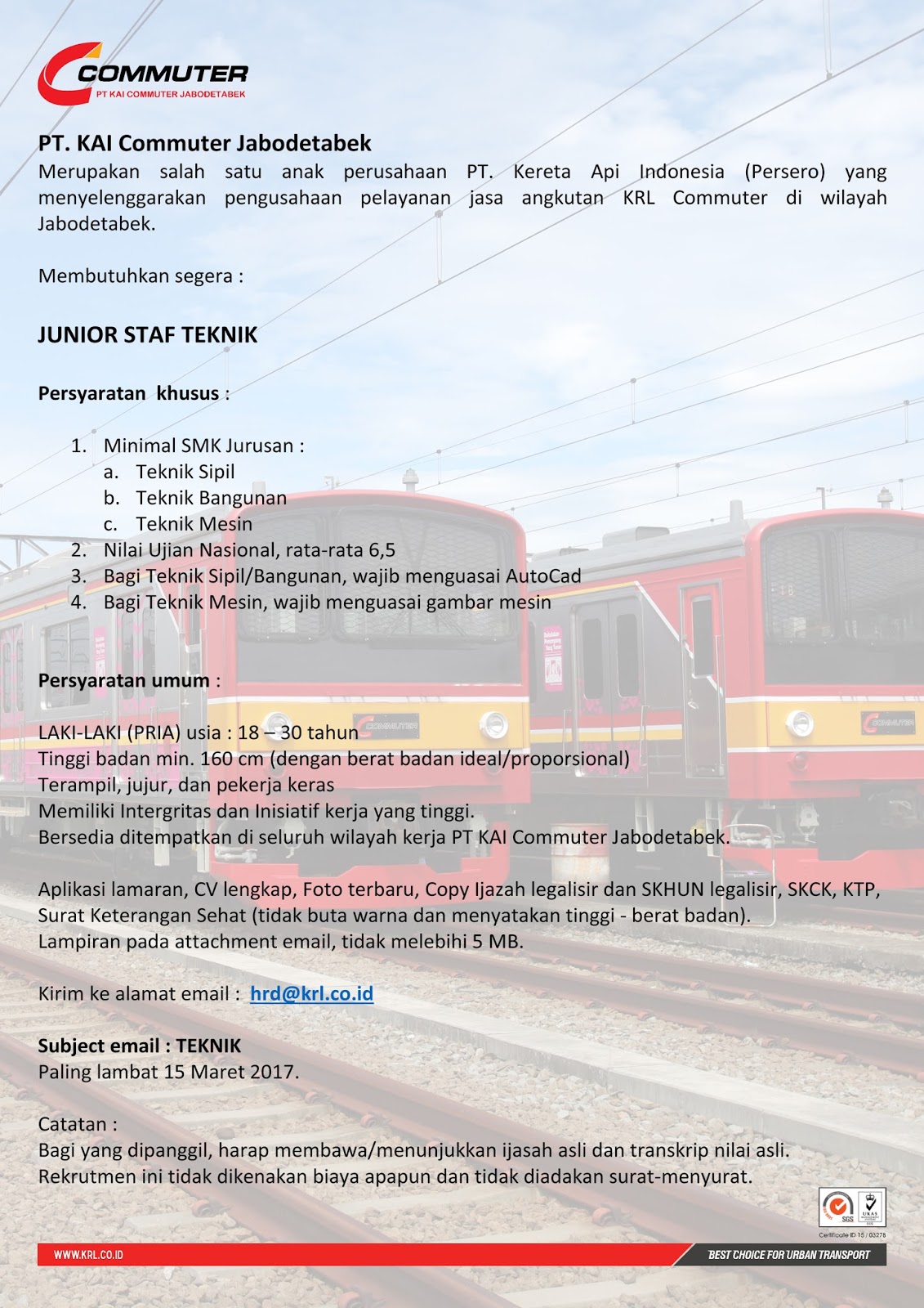 Lowongan Kerja Pt Kai Commuter Jabodetabek Terbaru Maret 2018 Karir Riau