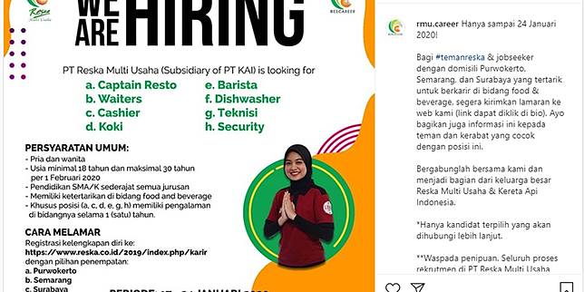 Pt Reska Multi Usaha Anak Usaha Pt Kai Buka Lowongan Untuk Lulusan Sma Usia Maksimal 30 Tahun Kompas Com Line Today