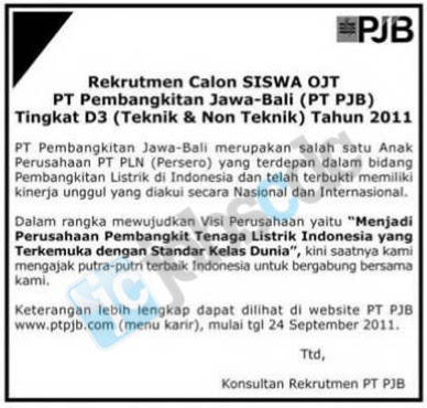 Lowongan Kerja Pt Pembangkit Jawa Bali Pjb Informasi Pendidikan Dan Dunia Kerja